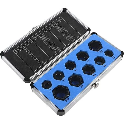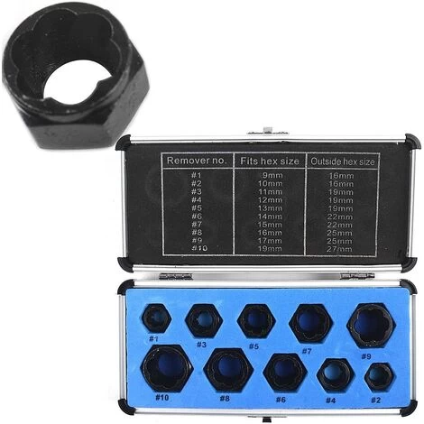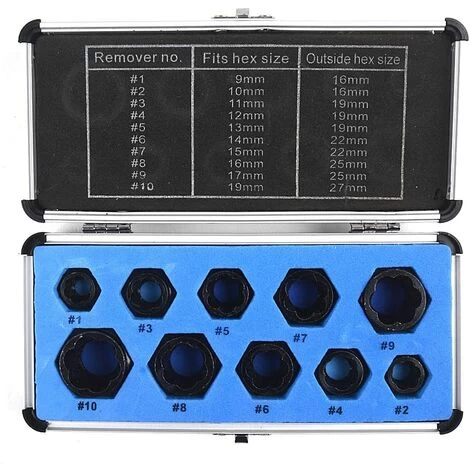 10 Nuss-Schrauben-Ausdreher-Stecknüsse werden mit einer Box aus Metall geliefert