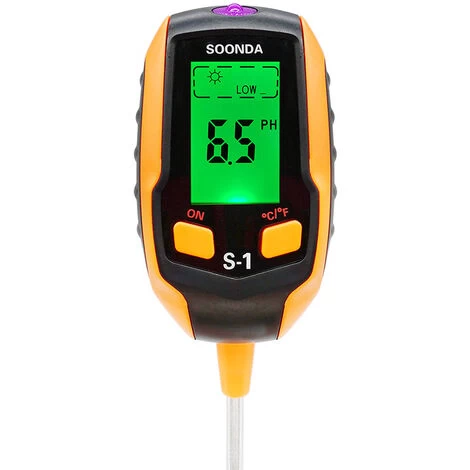 4-in-1-Bodentester: Das multifunktionale pH-Messgerät misst den pH-Wert, die Feuchtigkeit, die Temperatur und die Lichtintensität des Bodens genau und ist somit ideal für Zimmerpflanzen, Gärten, Rasenflächen und Bauernhöfe.