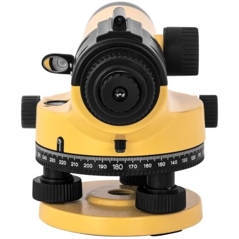 Neben seiner Genauigkeit – die Abweichung beträgt maximal 1 mm – überzeugt das Nivellier durch seine Langlebigkeit. Das Gehäuse des Niveliergeräts besteht aus robustem Aluminium. Das Objektiv mit einem Durchmesser von 38 mm und 32-facher Vergrößerung bietet einen hohen Messbereich. Über ein horizontales Fadenkreuz kann das Messgerät präzise ausgerichtet und über den praktischen Drehknopf fokussiert werden – der Mindestabstand beträgt dabei gerade einmal 0,3 m. Ein magnetischer Kompensator nivelliert das Gerät automatisch und erleichtert Messungen bei Vibrationen – beispielsweise in der Nähe von schweren Maschinen. Die Vorhorizontierung für das Nivelliergerät erfolgt über die mitgelieferte Dosenlibelle.