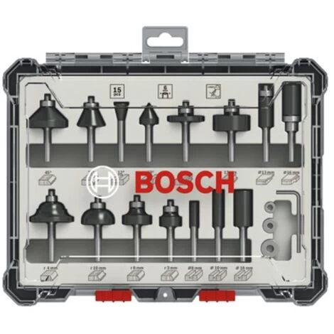 Freihandfräser-Set mit 6-mm-Schaft. 15-teilig. Fräserset mit 6-mm-Rundschaft.