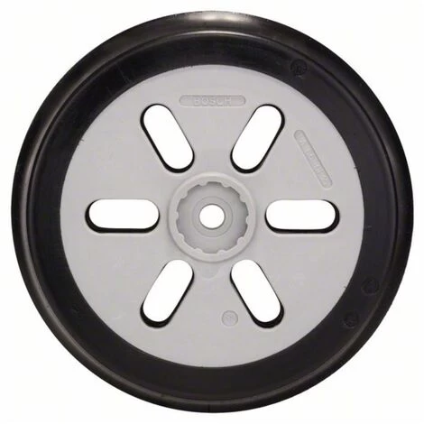 Schleifteller für Bosch-Exzenterschleifer. Ausführung: weich. Durchmesser: 150 mm. Weiche Schleifteller (grau) für Standardschleifarbeiten. Guter Abtrag und gute Oberflächengüte. Universell verwendbar. Passend zu GEX 150 AC Professional. PEX 15 AE.
