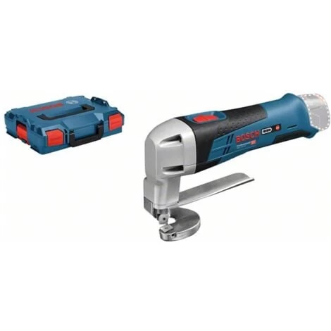 Bosch Akku-Blechschere GSC 12V-13, Solo VersionDie GSC 12V-13 Professional ist die kompakteste und handlichste Akku-Blechschere in der 12V-Kategorie von Bosch.Sie hat eine extrem kompakte und ergonomische Bauform und ist daher perfekt für schnelle Schnitte.Ihr Kopf wurde eigens für eine ausgezeichnete Beweglichkeit in Kurven optimiert.Die Schere ist zum Schneiden einer Vielzahl von Metallen mit einer Dicke von bis zu 1,3 mm geeignet.Sie ist kompatibel mit allen Bosch Professional 12V-Akkus und -Ladegeräten (Professional 12V System).Im Lieferumfang enthalten:Innensechskantschlüssel1/1 L-BOXX-Einlage für Gerät und Ladegerät (1 600 A00 2V0)L-BOXX 102 (1 600 A01 2FZ) | Eigenschaften: Länge: 443 mm, Breite: 360 mm, Höhe: 122 mm, Spannung: 12 V, Akkuspannung: 12 V, Produktart: Akku-Blechschere, Akku im Lieferumfang enthalten: Nein, Akkuanzahl: 0