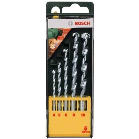 Bosch Steinbohrer-Set, 5-tlg., Durchmesser: 4 – 10 mm, HM-Steinbohrer | Eigenschaften: Werkstoff: Hartmetall, Gewicht: 0,12 kg, Durchmesser: 4 – 10, Schaft: Zylinderschaft, Verwendung: Mauerwerk, Kunststein, Kalksandstein, Natursteinwerk, Anzahl der Teile: 5, Enthaltene Bestandteile: 5 HM-Steinbohrer Ø 4/5/6/8/10 mm, Herkunft: China, NOBB: 30743561, TUN: 7427329, Lagen / Palette: 58, Min. Bohrbereich: 4, Max. Bohrbereich: 10