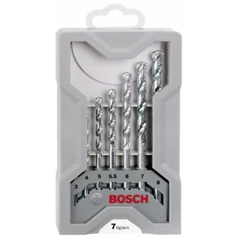 Steinbohrer-Set CYL-1 Impact. 7-teilig. Inhalt: 7 CYL-1 Impact Steinbohrer mit Durchmesser: 3 / 4 / 5 / 6 / 6 / 7 / 8 mm. Arbeitslänge: 30 / 40 / 50 / 60 / 60 / 60 / 80 mm. Gesamtlänge: 60 / 75 / 85 / 100 / 100 / 100 / 120 mm. Schlagbohrer für alle Gesteinsarbeiten zum optimalen Preis-/Leistungsverhältnis. Spiralenform mit halbrunden Profil für hohe Stabilität. Geeignet für Bohrungen in Mauerwerk. Kalksandstein. Natur- und Kunststein. Einsetzbar in allen Schlagbohrmaschinen. Hartmetallbestückter Schlagbohrer nach ISO 5468. Bohrerfarbe: Silber.