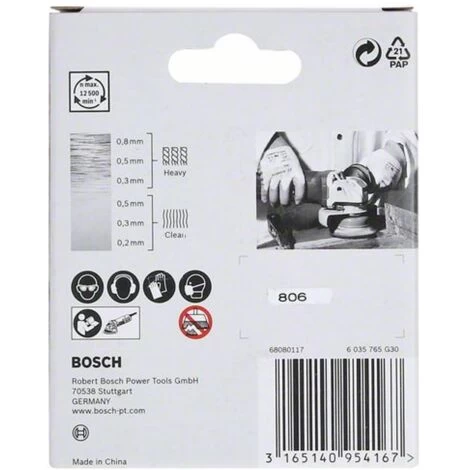 Die X-LOCK Topfbürste Clean for Metal mit gewelltem, vermessingtem Draht liefert ein besonders feines Oberflächenfinish. Mit einem vermessingten und gewellten Draht für leichte bis mittelschwere Reinigungsarbeiten ausgestattet, ist die Topfbürste zum Entfernen von Beschichtungen, Rost und Farbe von mittelgroßen bis großen Flächen aus Metall und Nichteisenmetall geeignet. Die vermessingten Drähte schützen die Bürste vor Korrosion. Die Topfbürste ist zum Schruppen, Mattschleifen und Reinigen von Verschalungen und Verkleidungen geeignet. Er ist für X-LOCK Winkelschleifer geeignet. Dank schlüssellosem X-LOCK System lassen sich Drahtbürsten schnell und bequem wechseln. Durchmesser mm: 75, Drahtstärke mm: 0,30, Drehzahl, max. min-1: 12.500, Für Winkelschleifer, mind. ø (mm): 115, Befestigung: X-LOCK, Werkstoff: Gewellter Draht, vermessingt, X-LOCK | Eigenschaften: Durchmesser: 75 mm, Länge: 113 mm, Breite: 90, Werkzeugaufnahme: X-Lock, Artikeltyp: , Drahtstärke: 0,3 mm, Anwendungen: Bürsten, Maschinentyp: , Materialanwendung: , Besatzmaterial: Messing