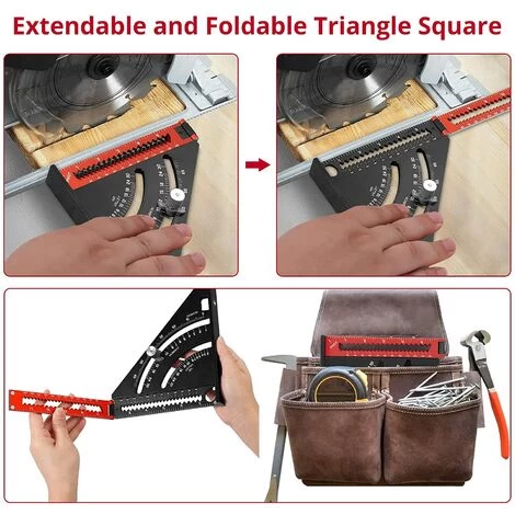 【Multifunktionales faltbares Dreieckslineal】 : Klappgeschwindigkeitsquadrat, 6 klappbarer Verlängerungsarm kann 6 oder 12 Layoutanforderungen erfüllen; Beim Öffnen erhöht sich der Messabstand. Im zusammengeklappten Zustand wird der Stauraum reduziert, was das Tragen erleichtert. Es hat 2 Maßeinheiten, metrisch und imperial, was für Ihre Messgewohnheiten bequemer ist.