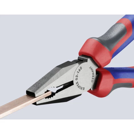 Mit Greifzonen für Flach- und Rundmaterial für vielseitigen Einsatz. Mit Schneiden für weichen und harten Draht. Lange Schneiden für dickere Kabel. Schneiden zusätzlich induktiv gehärtet, Schneidenhärte ca. 60 HRC.