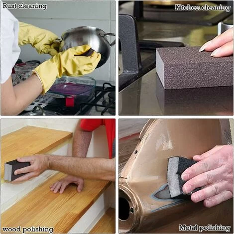 - 【 【Polierwerkzeug】 Der Schwamm hat eine gute Reinigungs- und Polierwirkung. Die Schleifblöcke eignen sich zum Reinigen von Küchengeräten, Polieren von Holzmöbeln, Entrosten und Polieren. Der Schwamm passt sich gut an und kann auf flachen und unebenen Oberflächen gut funktionieren.
