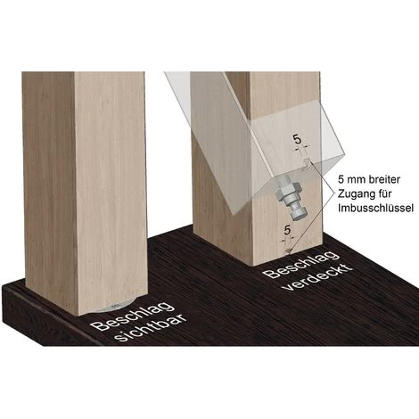 - Universelle Anwendungsmöglichkeiten wie Tischfußbefestigung, Tischwangen, Bänke, Bettbeschlag, Tablarträger in Raumteiler, etc.