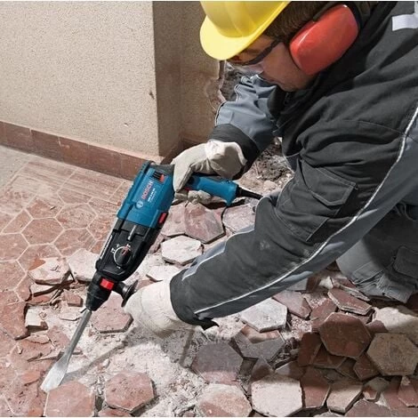 – Der Meißel-Bohrer GBH 2-28 F von Bosch ist mit zwei Spannfuttern ausgestattet: SDS-Plus und austauschbar, um ein Max. an Bohrspitzen und Meißeln zu verwenden. Das neue KickBack-Gerät: Dieses Sicherheitskupplungssystem arbeitet über einen intelligenten Sensor, der das Werkzeug bei einem Blockieren des Meißels stoppt.