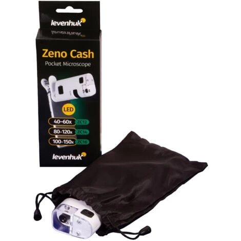Das Taschenmikroskop Levenhuk Zeno Cash ZC12 ist ein Vergrößerungsinstrument mit eingebautem Licht. Dank seines Lichts kann es zur Kontrolle von Papiergeld verwendet werden. Dieses Mikroskop ist kompakt und leicht; Sie können es leicht zu einem Geschäftstreffen oder auf lange Reisen ins Ausland mitnehmen. Es ist nützlich auf Märkten oder in Supermärkten: Sie können jedes Ticket überprüfen, das Sie haben.